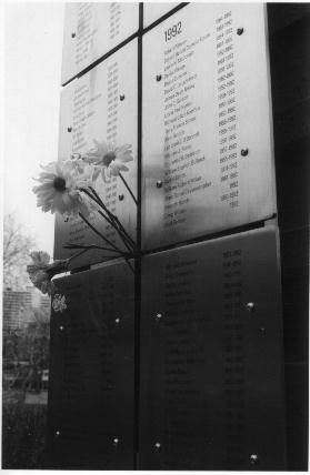 The AIDS Memorial designed by Toronto-based architect Patrick Fahn is unveiled in Cawthra Park, the result of a program run through The 519.