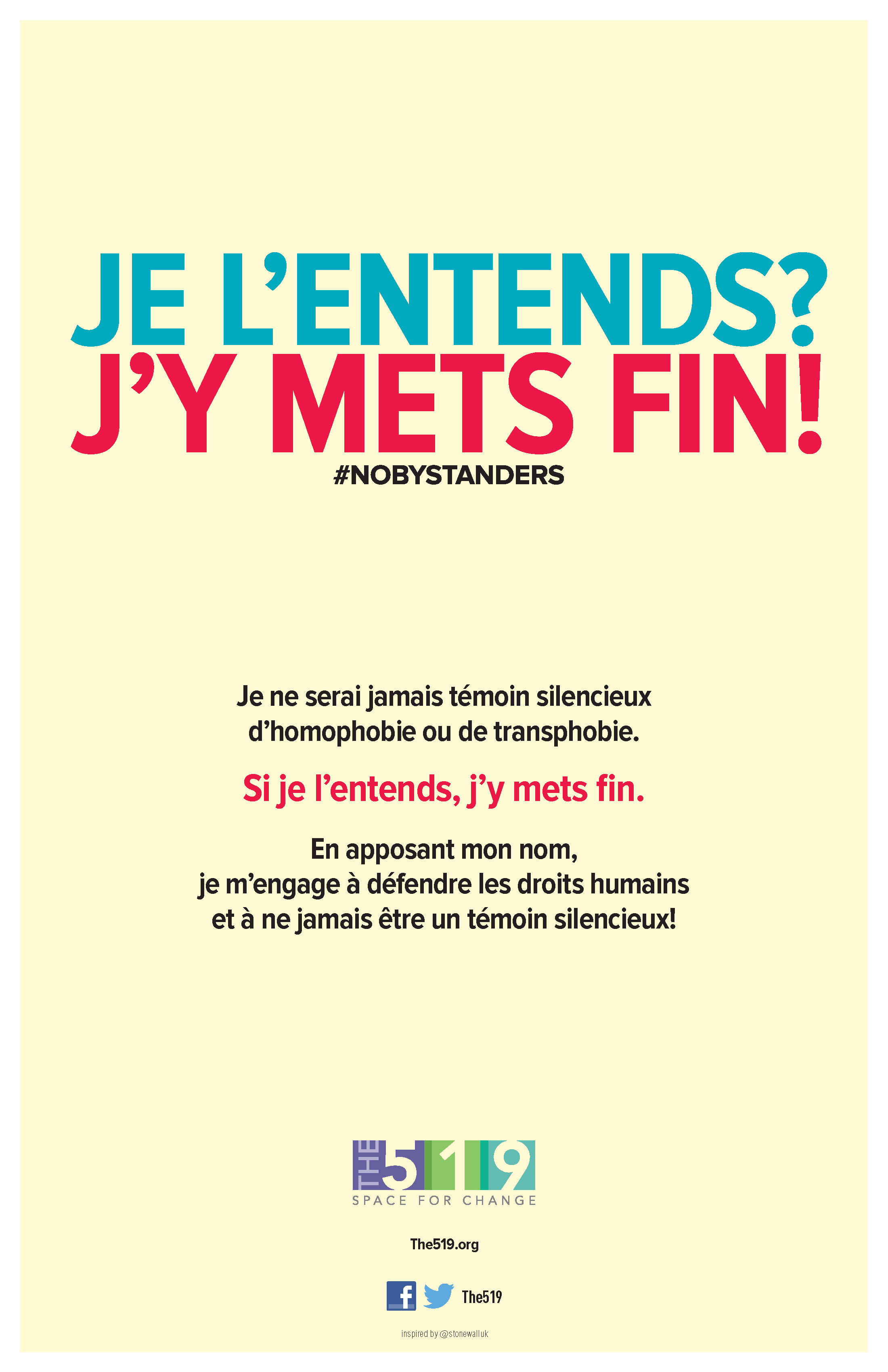 The Hear It! Stop It! toolkit includes English and French language versions of the Hear It! Stop It! pledge card and English versions of the “If I hear it, I will stop it” poster series.