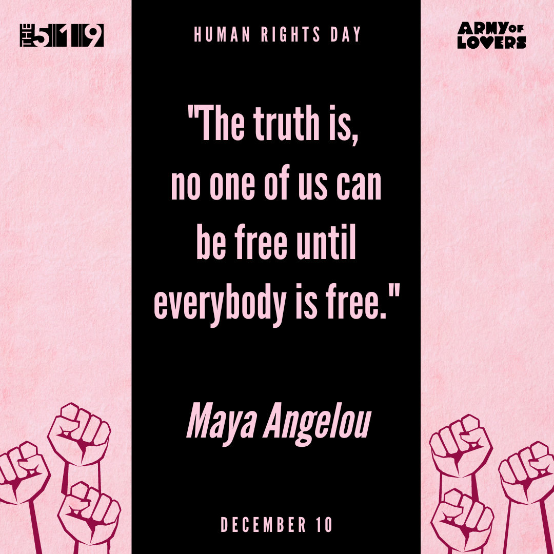 December 10 is Human Rights Day. When our rights are under attack, we fight back. When they are threatened, we resist. When they are questioned, we advocate and educate. In the words of Maya Angelou, “No one of us can be free until everybody is free.”