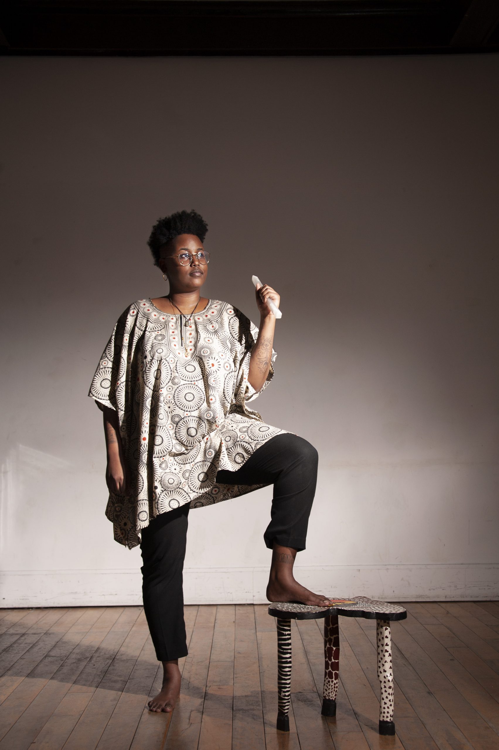 “I have learnt to forgive – myself and those around me. And this sitting stool is a reminder of my journey from self-hate to self-love as a black Muslim who has finally embraced her own self.”