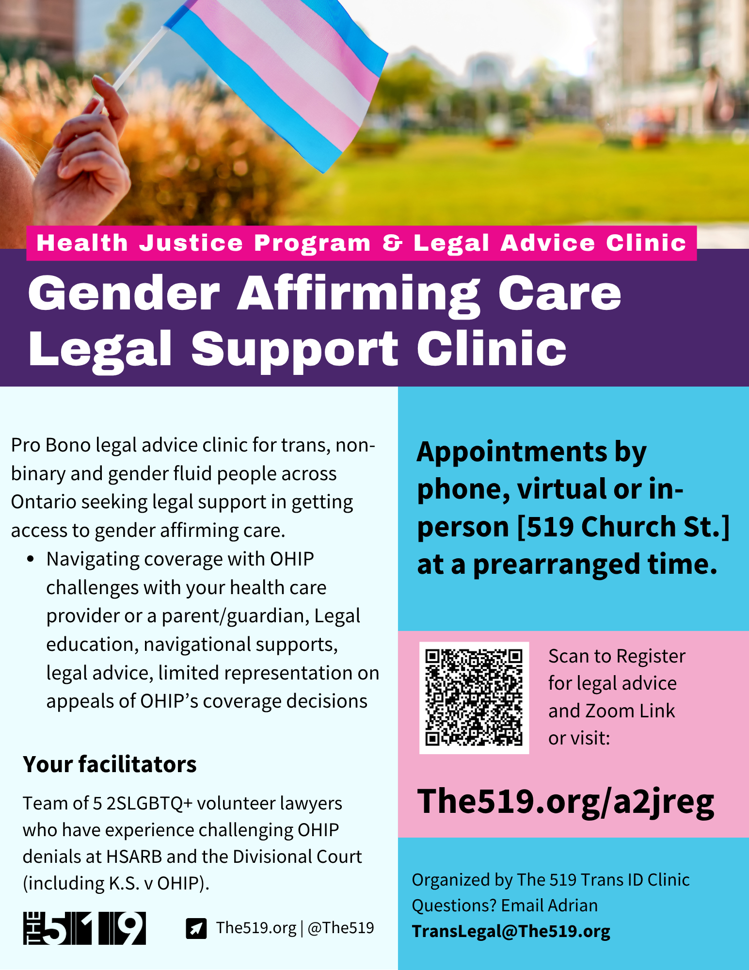 Or email for more information: TransLegal@the519.org
