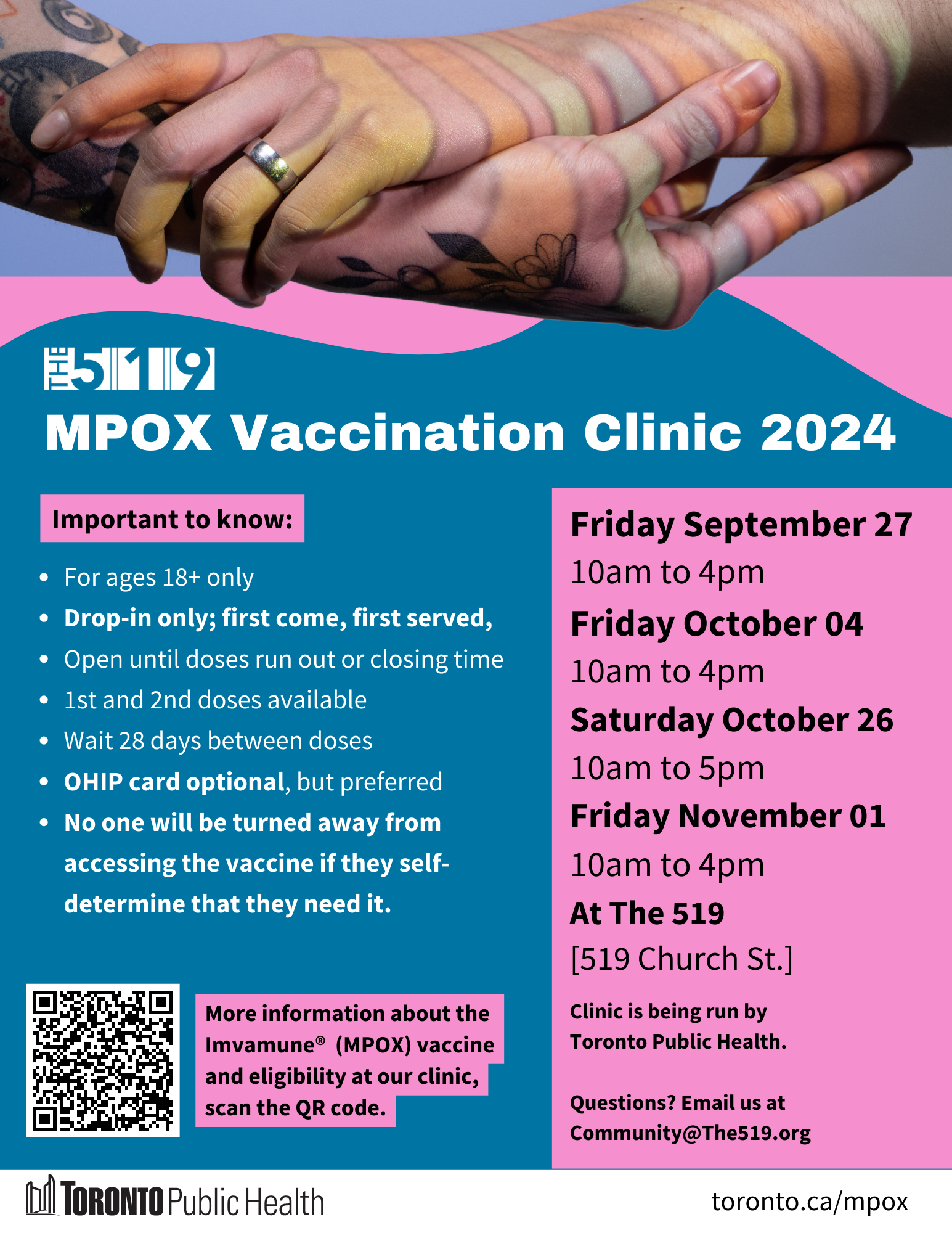 More information about the Imvamune® (MPOX) vaccine and eligibility at our clinic, visit: toronto.ca/mpox
