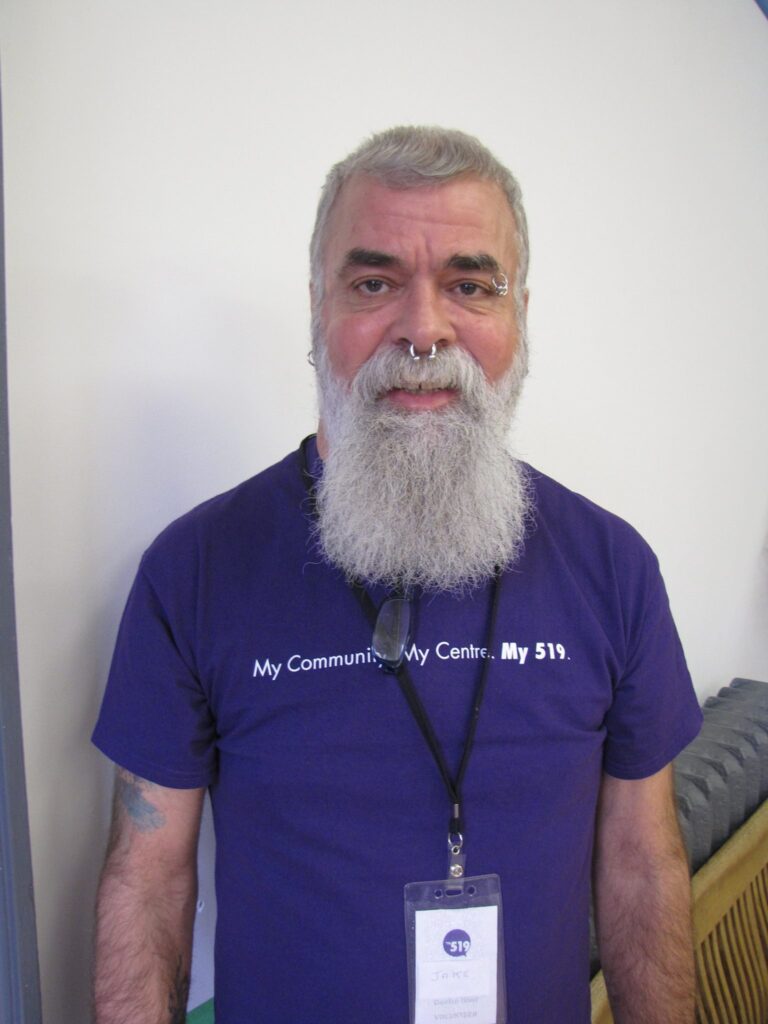 Jake lived in service to others. He was deeply involved with AIDS service organizations like Casey House and the Toronto People with AIDS Foundation. He picked up groceries for neighbours, delivered meals, and offered support to anyone who needed it. His love for community brought him to The 519, where he volunteered for many years.